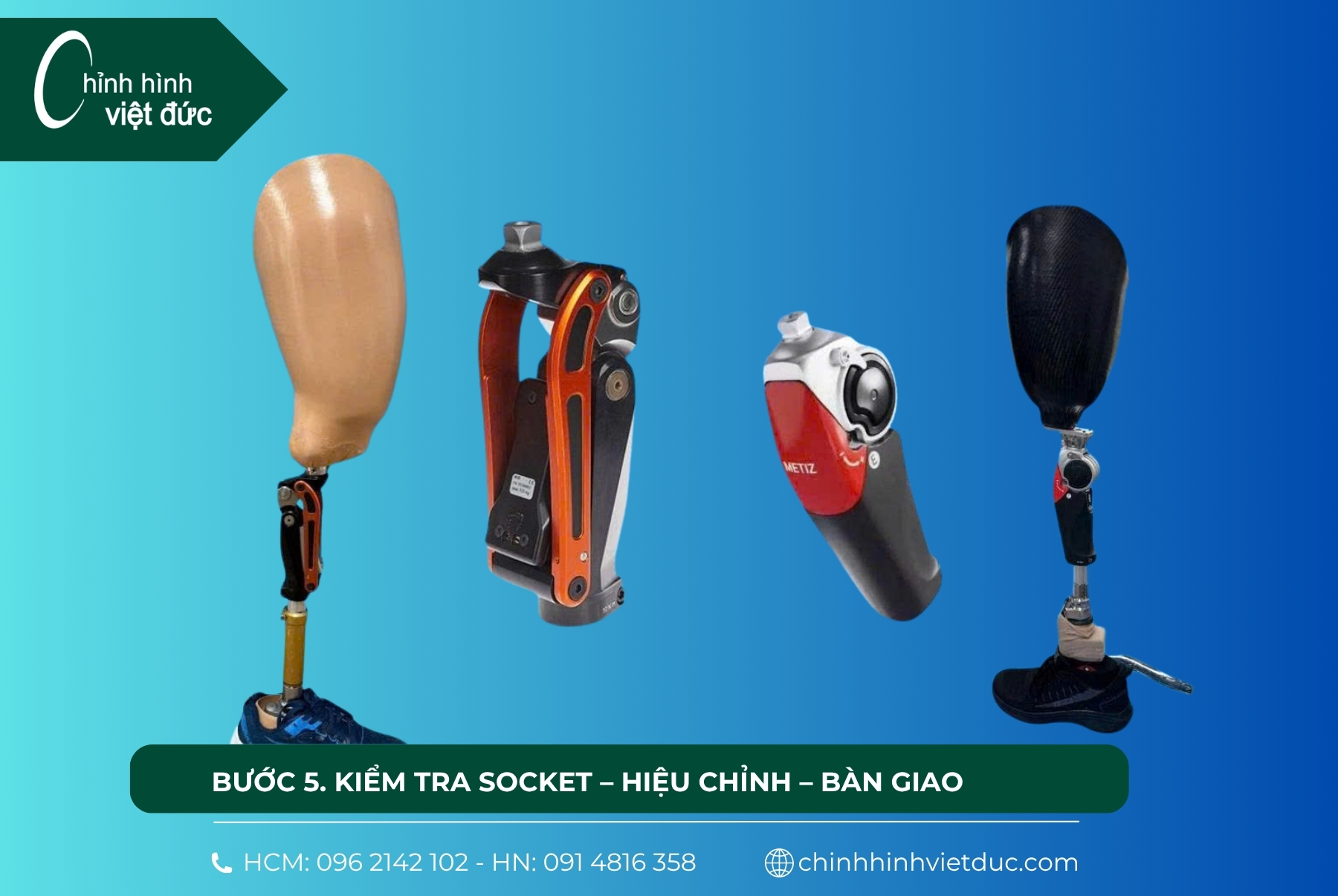 - Hiệu chỉnh kết nối khớp gối/bàn chân giả (nếu có)