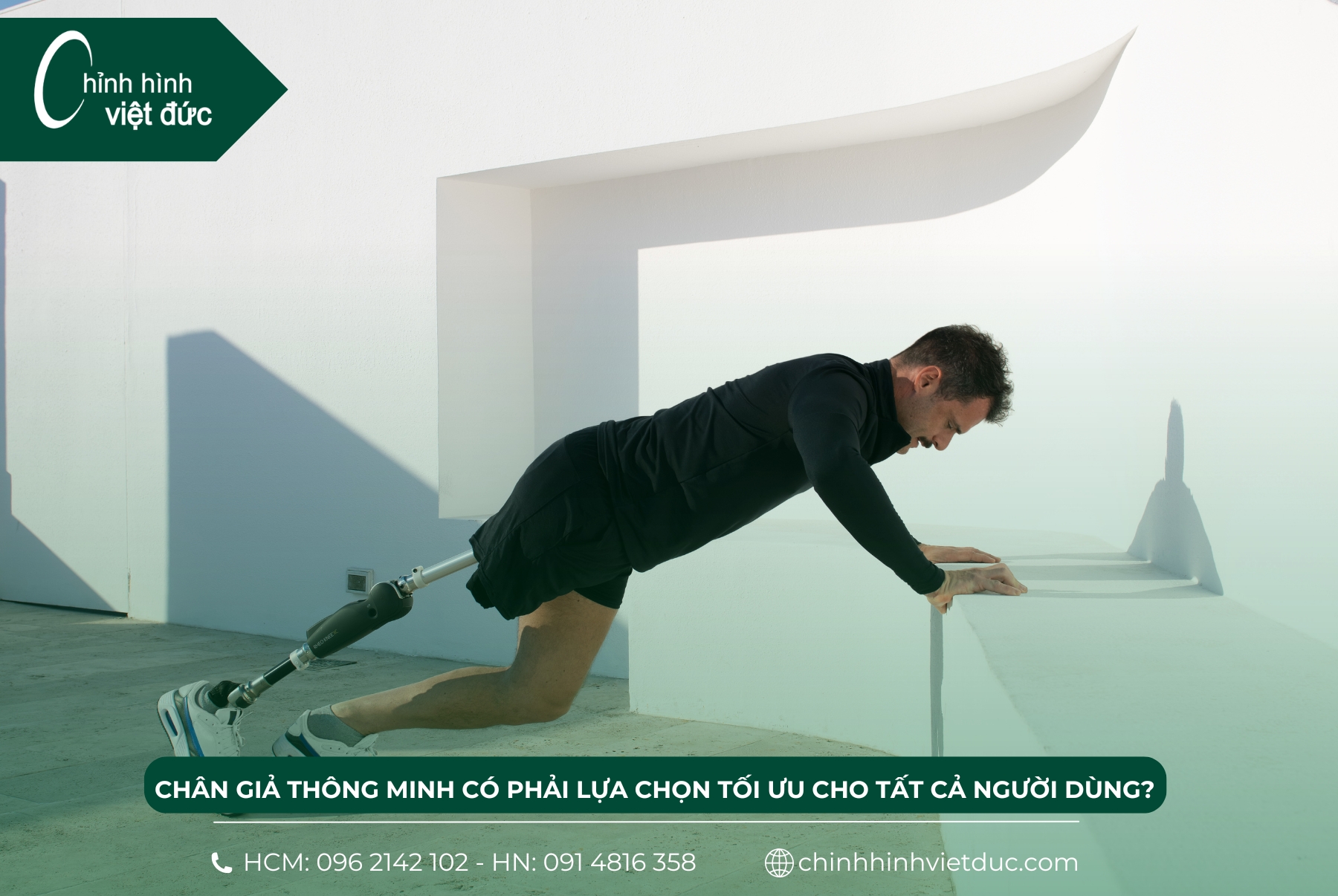 Chân giả thông minh là bước tiến vượt bậc trong công nghệ phục hồi chức năng, mang lại chuyển động tự nhiên, tiết kiệm sức và nâng cao chất lượng sống. Tuy nhiên, đây không phải là lựa chọn lý tưởng cho mọi người. Chi phí cao, bảo trì phức tạp và yêu cầu kỹ thuật sử dụng khiến người dùng cần cân nhắc kỹ trước khi đầu tư. Quan trọng nhất là lựa chọn thiết bị phù hợp với nhu cầu, điều kiện tài chính và khả năng thích nghi cá nhân. Để được tư vấn chuyên sâu và hỗ trợ cá nhân hóa, hãy liên hệ Chỉnh Hình Việt Đức – chuyên gia trong lĩnh vực phục hồi vận động hiện đại.